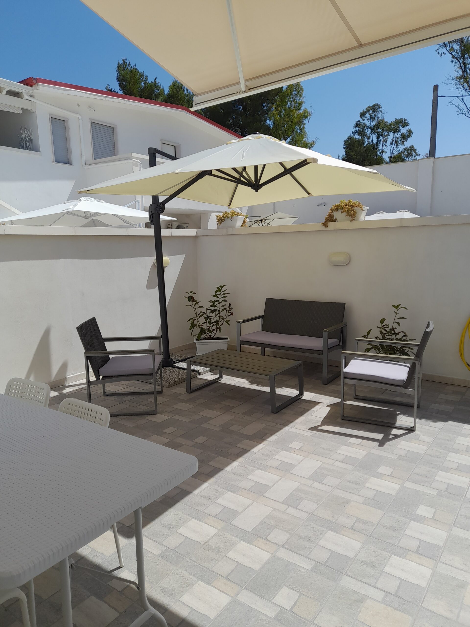 Villetta di recente costruzione con allacciamento all’acquedotto, climatizzatore, zanzariere, 2 terrazzi con pergolato e tende da sole, lavatrice, lavastoviglie, forno elettrico e forno a microonde, utensili da cucina, stoviglie, biancheria per cucina, biancheria da letto e asciugamani (no accappatoi), ecc