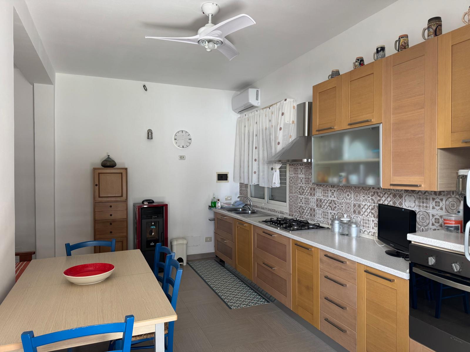 Villa indipendente (a tre minuti a piedi dal mare), con posti auto, cucina, 3 camere da letto, 2 bagni, climatizzatori in tutte le stanze, TV, barbecue in muratura, lavatrice, lavastoviglie, max sei posti letto.